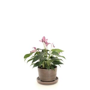 Ridged Plant Pot with Pink Plant